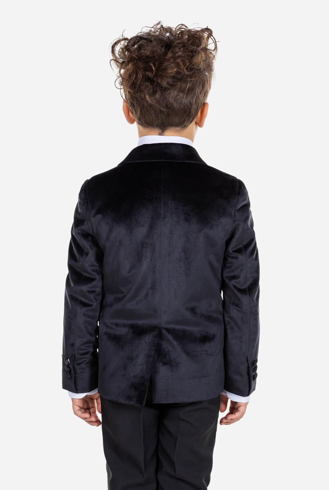 Convierte a tu pequeño en un mini ícono de la moda con nuestro esmoquin de terciopelo negro. Perfecta para cualquier ocasión especial, esta chaqueta añade un toque de elegancia y estilo. Deje que su hijo destaque y haga una declaración con esta pieza peculiar y genial. (Pajarita no incluida).