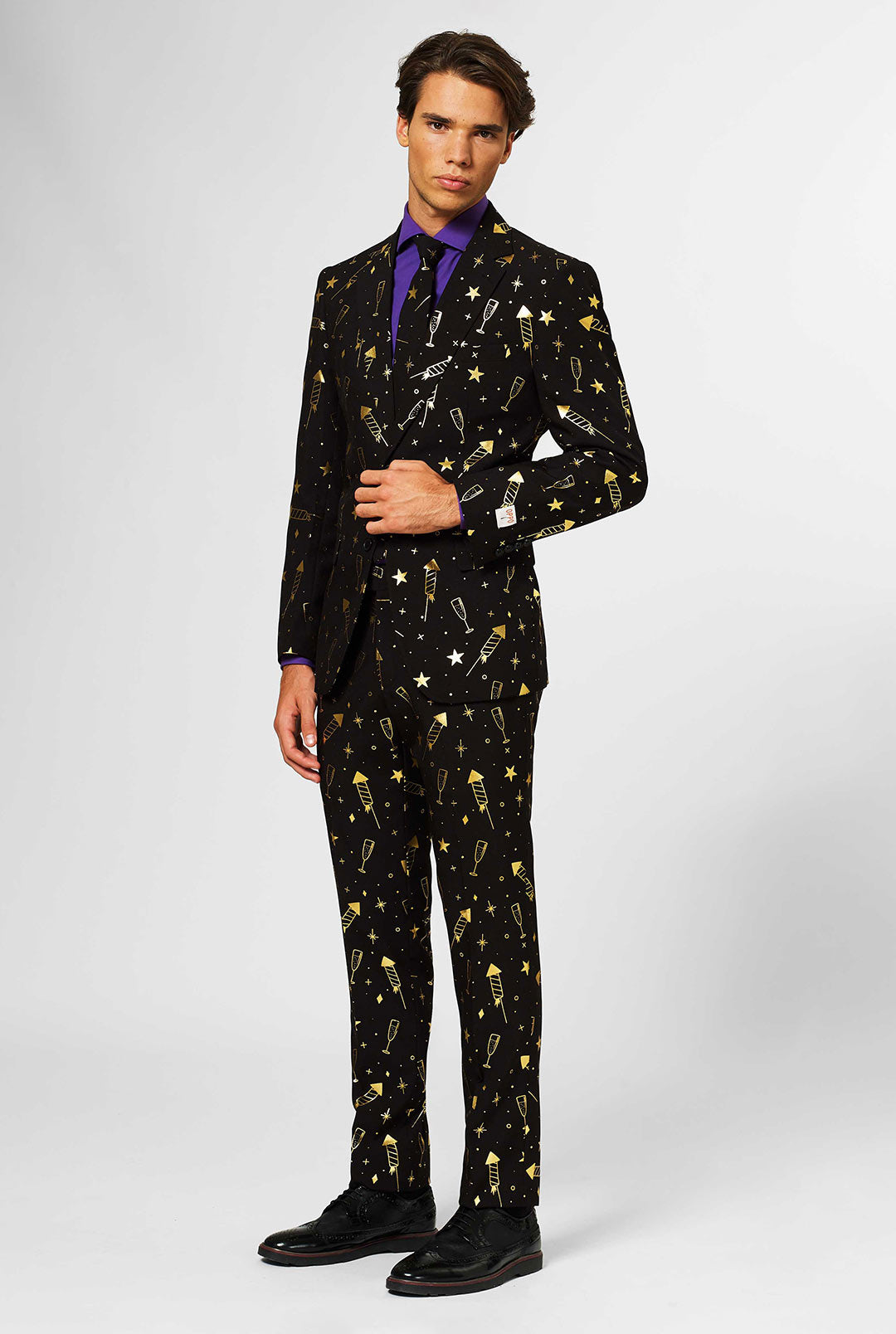 Cuando hay fuegos artificiales y champán, sabes que es una ocasión especial. Así que vístete para deslumbrar con este llamativo traje. Tiene una lámina dorada brillante única que te hace brillar instantáneamente. Sí, una vez que te lo pruebas, ¡desearías que fuera Nochevieja todos los días!