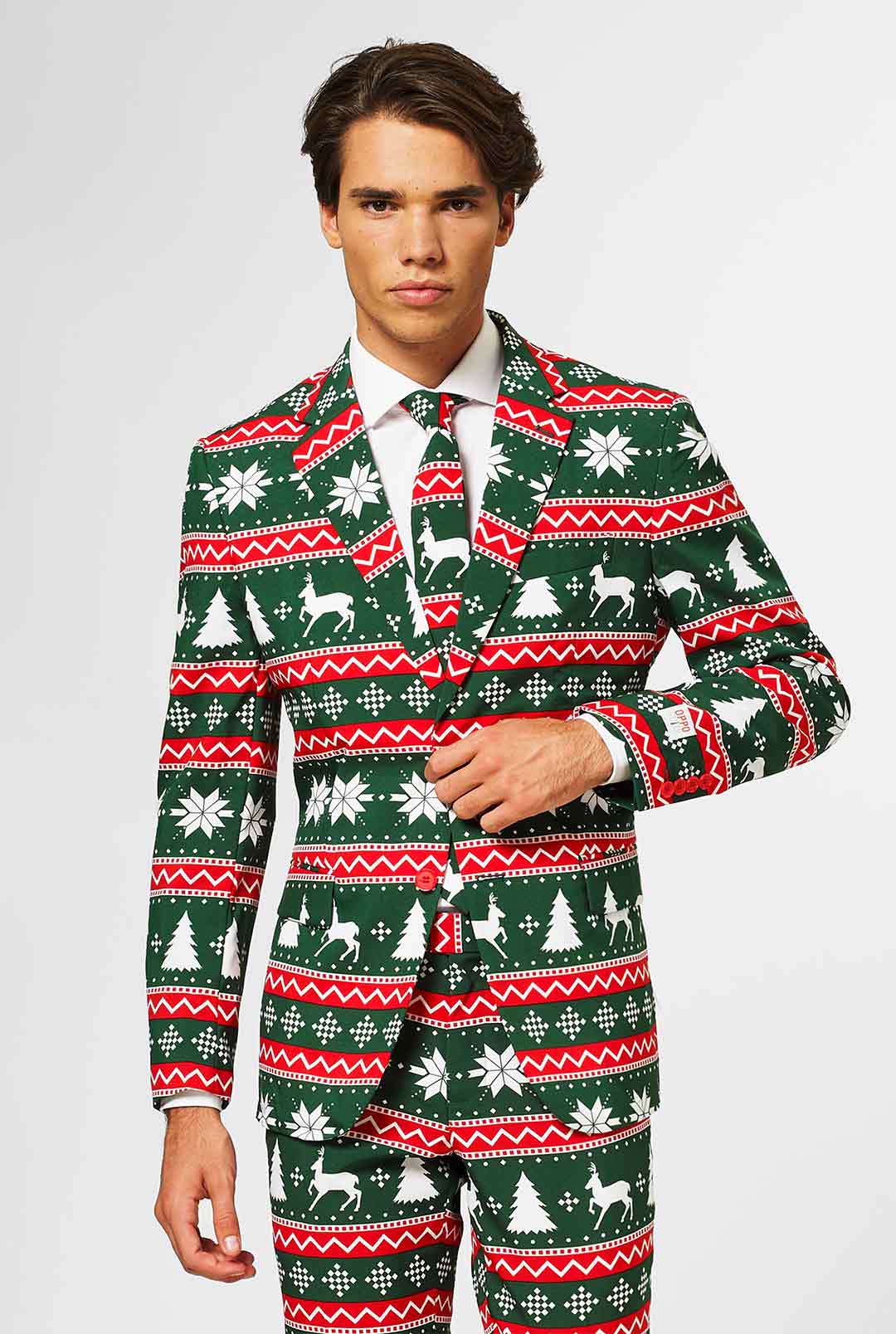 Este traje verde y rojo es imprescindible para las fiestas. Estamos bastante seguros de que estos colores navideños definitivos te quedarán tan bien que Santa finalmente te comprará ese regalo que has deseado durante años. Además, no te sorprendas si todos los que te rodean empiezan a cantar '¡Todo lo que quiero para Navidad eres tú!' mientras lo llevas puesto. ¡No digas que no te avisamos!