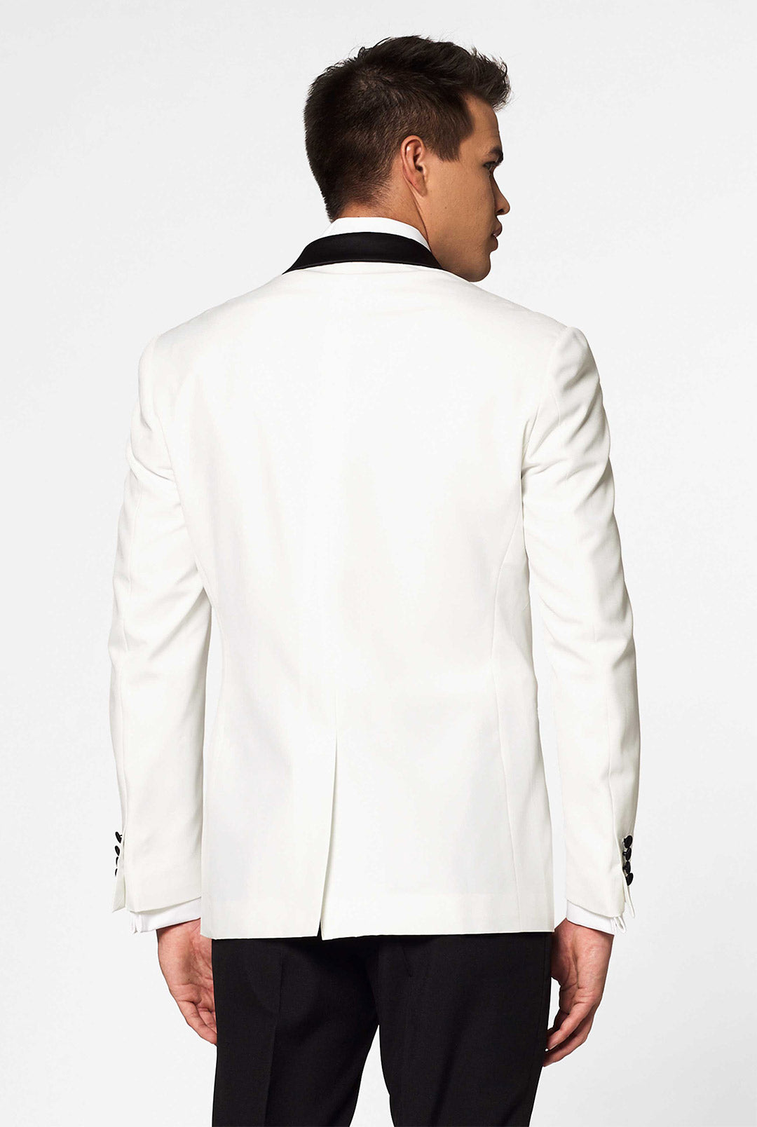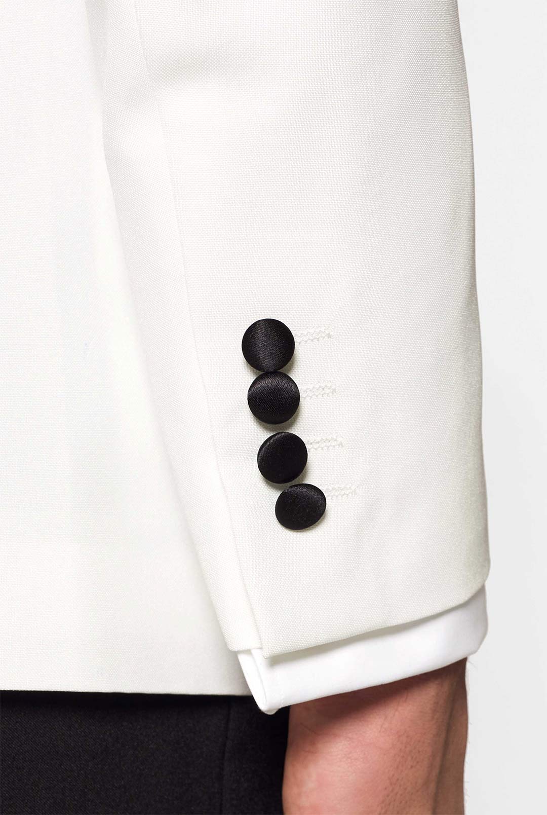 Un esmoquin blanquecino combinado con pantalones de esmoquin negros de doble pliegue y una pajarita es una de las opciones más elegantes cuando se trata de ropa formal y te hace destacar con estilo. Seguramente funcionará bien para eventos de gala, así como para eventos formales diurnos y ocasiones formales de verano. El esmoquin Pearly White presenta una solapa tipo chal de raso y ha sido confeccionado para ofrecer un ajuste elegante y moderno.