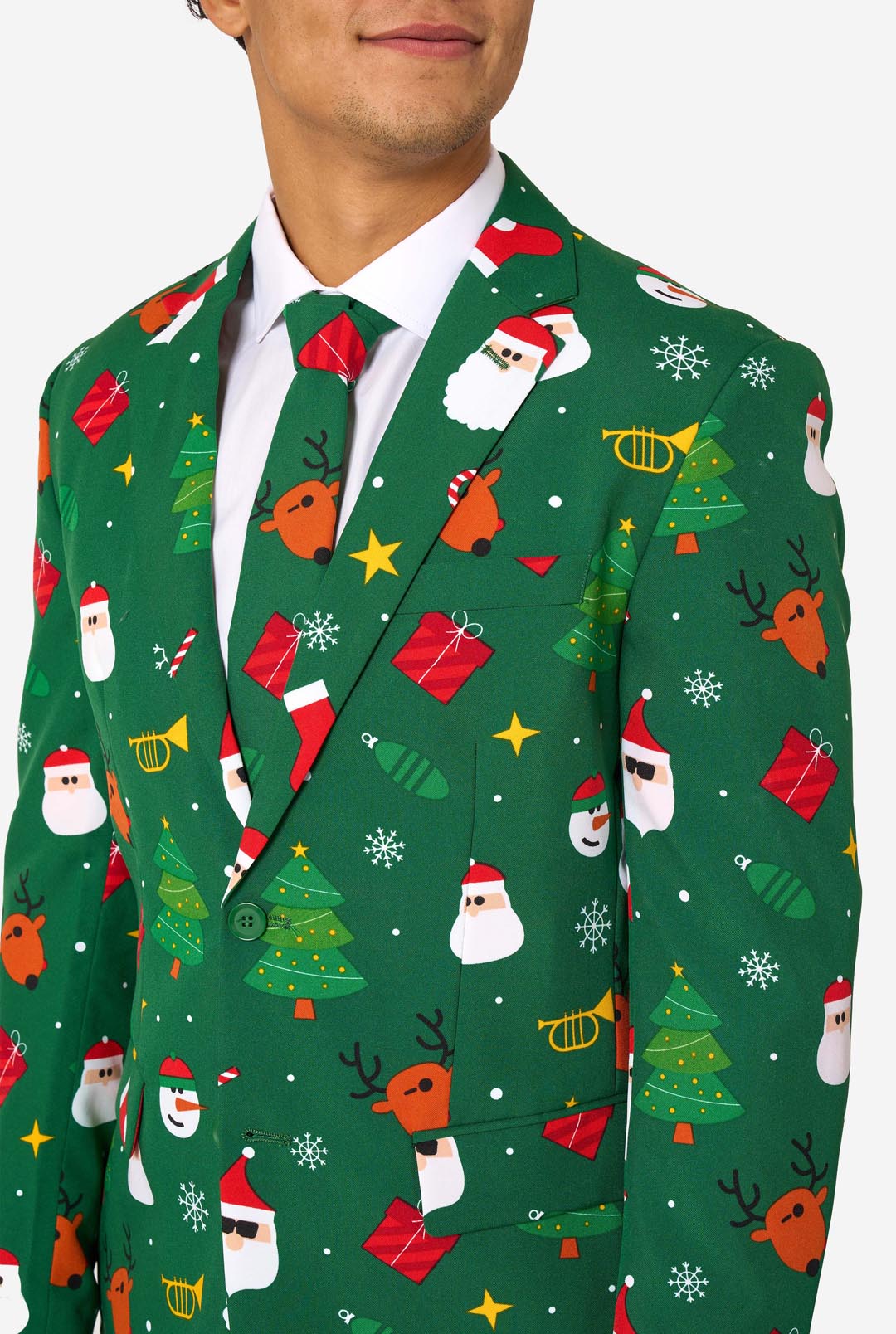 Noël est le cadeau qui continue d'être offert chaque année. Si vous avez besoin d'un look festif pour les vacances, ne cherchez pas plus loin que le costume vert Festivity Christmas. Il comporte le Père Noël, des rennes, des arbres de Noël et des étoiles scintillantes. C'est le look le plus festif que vous ayez jamais eu et vous placera fermement sur la liste des « bonnes » du Père Noël en guise de récompense annuelle.