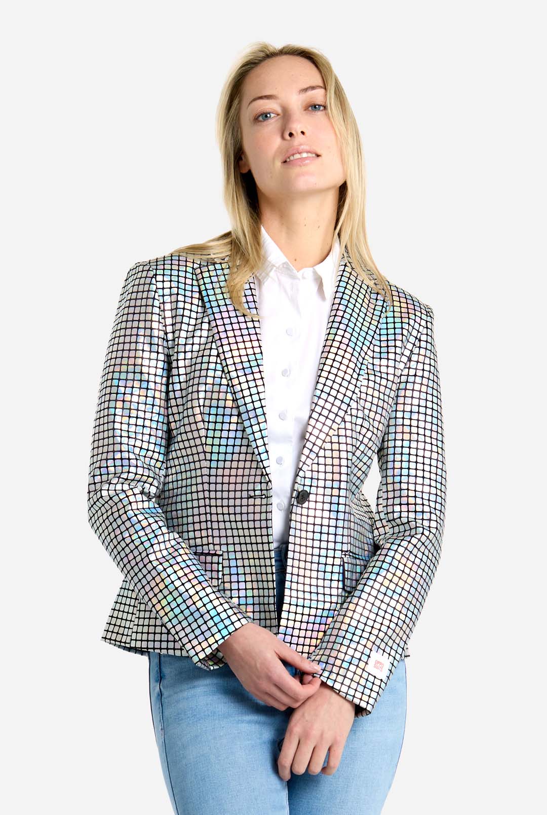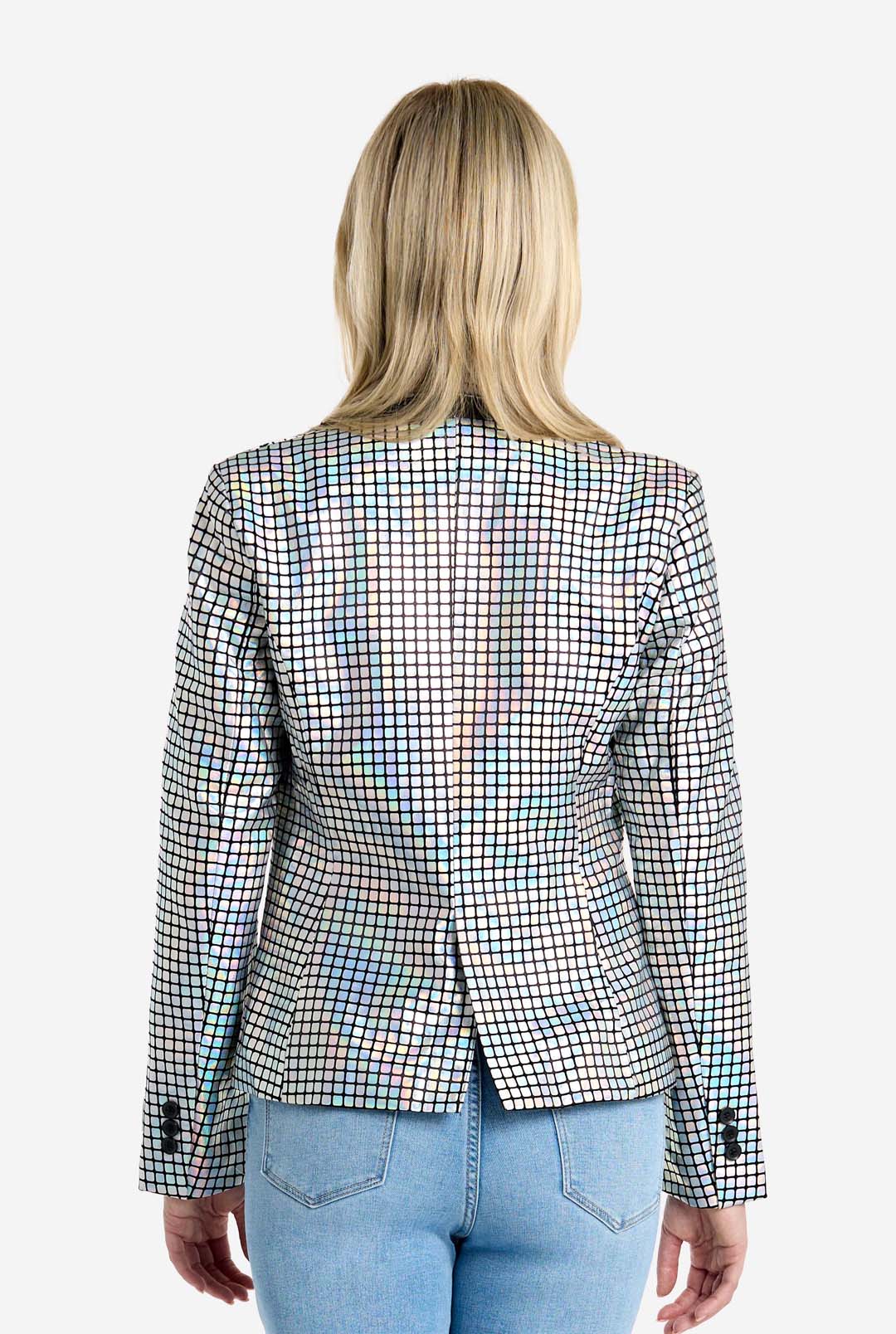 Le disco n'est pas mort et vous êtes là pour le prouver. Soyez la boule disco sur la piste de danse, scintillez et brillez et ayez l'air si divin dans ce blazer brillant. Argent scintillant avec la grille carrée pour que vous ressembliez à cet orbe emblématique sur lequel nous dansons toujours. Discoballer s'adresse à ceux qui ont un cœur nostalgique mais une confiance intrépide car tous les yeux seront rivés sur vous. Allez, allez Discoballer !