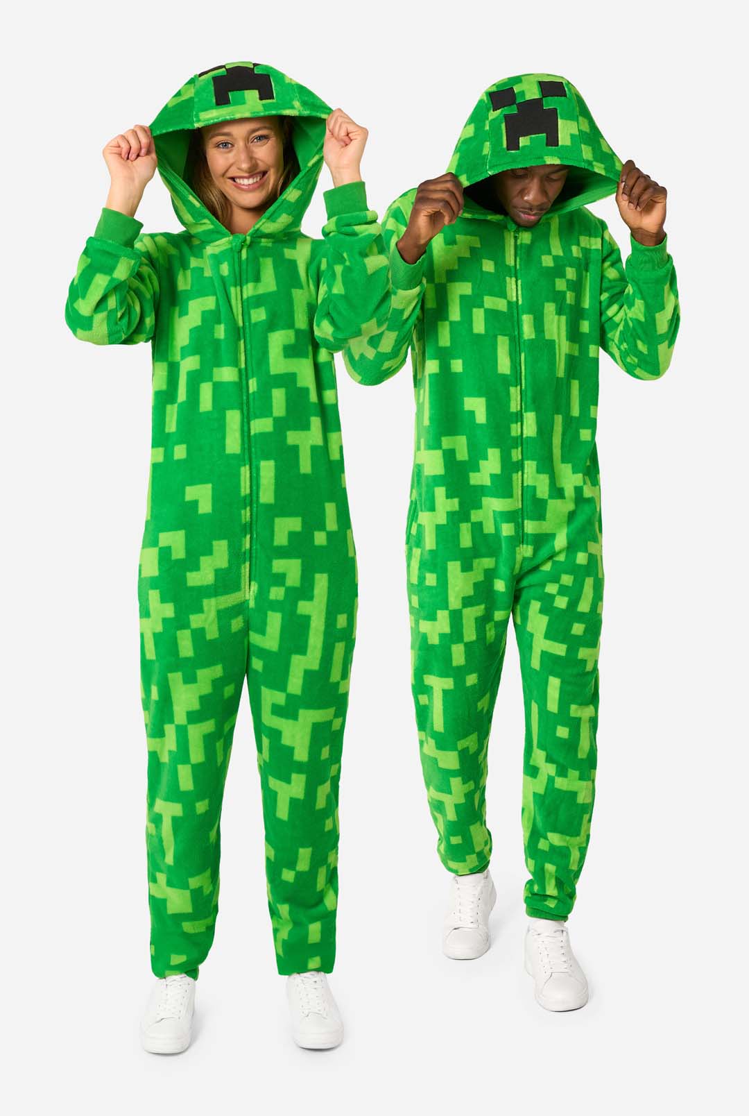 Relax in true hiss-terical Minecraft style: this eye-catching onesie is the ultimate in blocky relaxation. Creepers are infamous for their stealth and explosive surprises, but this Creeper Onesie delivers only good times so that you can relax in comfort. (TNT and sudden detonations not included.)