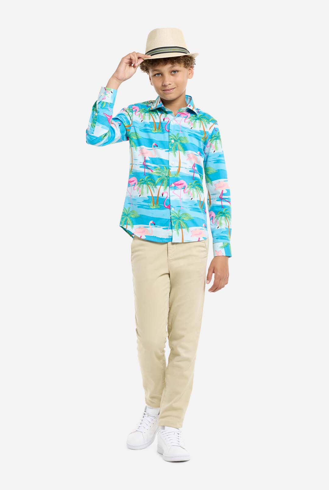 Act like a bird of paradise with the tropical Flaminguy shirt from OppoSuits. This shirt is an upgrade on your formal Hawaiian shirts and is perfect for giving your grown man a tropical upgrade. The shirt is originally tailored to wear with a suit. So due to the fit it will stay in your pants all day - even when you’re going to have fun in it.