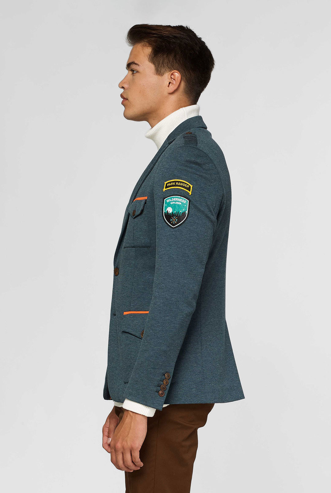 Inspired by the look of park rangers, this OppoSuits Deluxe blazer is a modernized and classy version of an iconic ranger jacket. It’s a soft, sleek blazer with shoulder epaulettes, functional pockets, wooden buttons and merit badges for that ultimate outdoor look. Despite its forest green camouflage color, it will not fail to make you stand out.